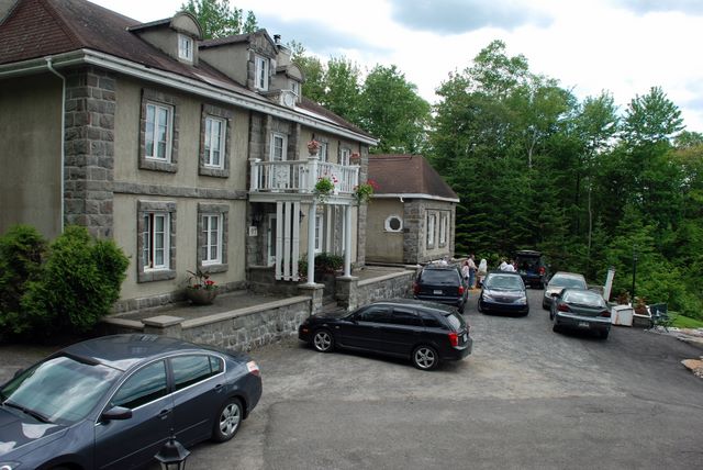 La façade du Manoir. En arrière plan, le sculpteur Sylvain Forest
